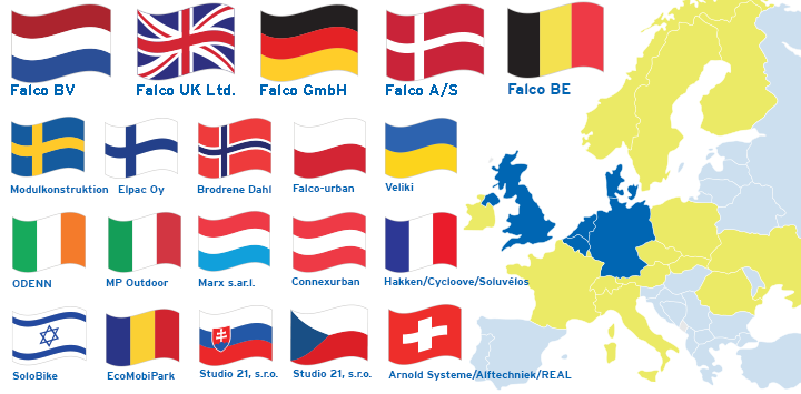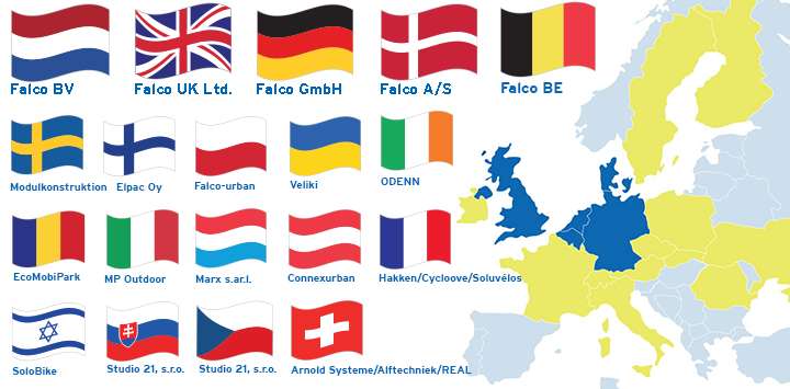 Falco är verksamt i ett antal europeiska länder med huvudkontor i Vriezenveen, Nederländerna. Nedan hittar du en lista över aktuell tillgänglighet i olika länder och kontaktuppgifter: