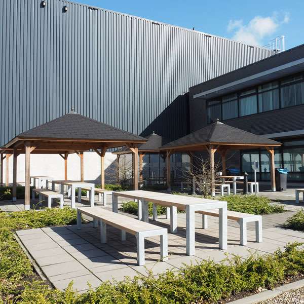 Bordet är gjort av trä och har en ram av robust stål som är varmgalvaniserat i enlighet med BS EN ISO 1461. FalcoBloc kan ha en praktisk stil eller få ett mer kraftfullt utseende med hjälp av en ytbehandling med pulverlack i valfri RAL-kulör.
